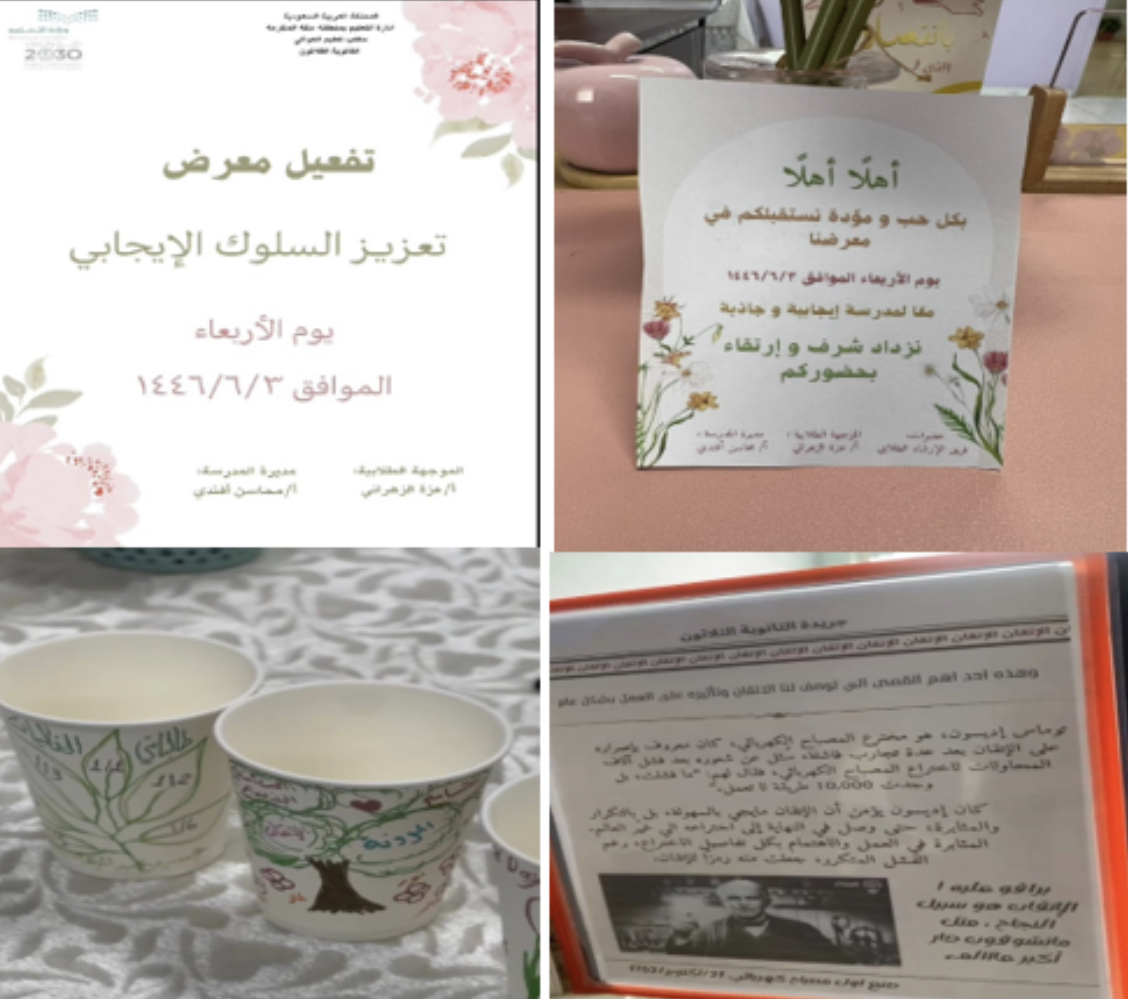 فعلت الثانوية الثلاثون التابعة لمكتب تعليم العوالي بالإدارة العامة للتعليم بمكة المكرمة يوم الأحد 29/ 5/ 1446هـ حتى يوم الخميس 4/ 6/ 1446هـ، برنامجا تثقيفيا عن (تعزيز السلوك الإيجابي )، نفذته الموجهة الطلابية عزة الزهراني بمساندة طالبات فريق الإرشاد الطلابي ،وتحت إشراف مديرة المدرسة محاسن أفندي عبر الإذاعة المدرسية ، هذا وتضمن البرنامج معرض مصاحب استعرض الطرق لتفعيل السلوك الإيجابي مما أفاد و أثرى المعلومات لدى الطالبات والمنسوبات في المدرسة.