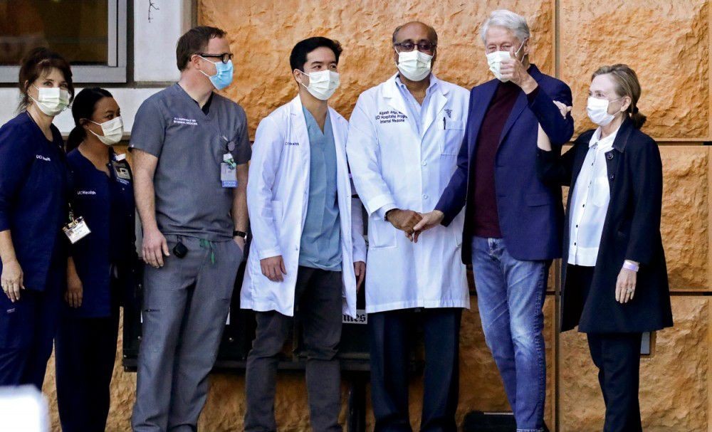 وغادر مركز إيرفين الطبي بجامعة كاليفورنيا تصحبه زوجته هيلاري كلينتون وزيرة الخارجية السابقة والمرشحة الديمقراطية للرئاسة عام 2016 التي لوحت للصحافيين قبل أن يغادر الزوجان المستشفى في موكب.
