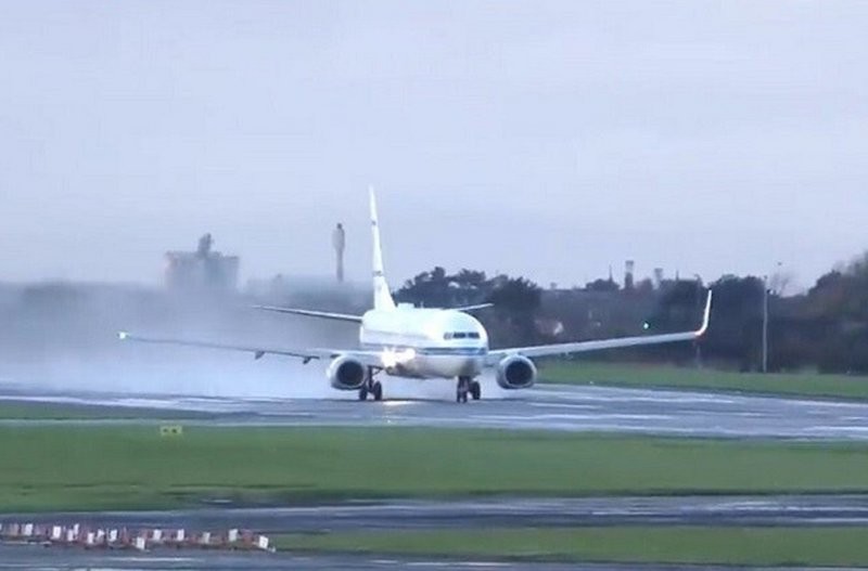 وذكرت وسائل الإعلام أن دانييل ساندر، المتحمس للطيران، البالغ من العمر 22 عامًا، من بريستويك، التقط اللحظة المحرجة للطائرة الرسمية، وهي من طراز بوينج 737- 900، عندما انزلقت على مدرج المطار أثناء مغادرتها.
