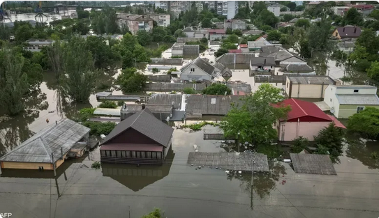 وغمرت مياه الفيضانات مساحة شاسعة من جنوب أوكرانيا الأربعاء جراء تدمير سد كاخوفكا الضخم على خط المواجهة بين القوات الروسية والأوكرانية التي تلقي كل منها بالمسؤولية في ذلك على الأخرى.