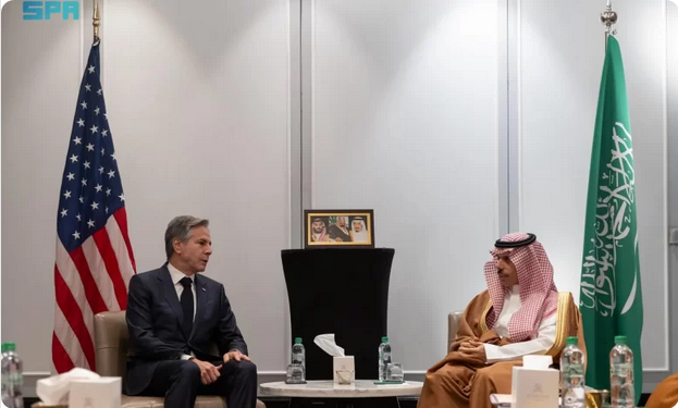التقى صاحب السمو الأمير فيصل بن فرحان بن عبدالله وزير الخارجية، في العاصمة الأردنية عمّان، اليوم، معالي وزير الخارجية الأمريكي أنتوني بلينكن، وذلك على هامش الاجتماع العربي الأمريكي.