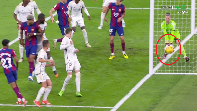 هل تجاوزت الكرة خط المرمى؟.. لقطة مثيرة للجدل في لقاء ريال مدريد وبرشلونة