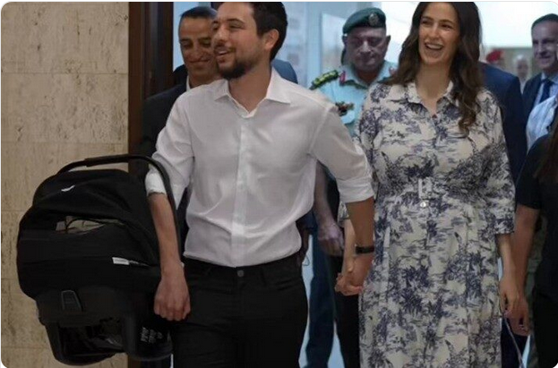 الأميرة رجوة تغادر المستشفى برفقة زوجها والمولودة الجديدة الأميرة إيمان