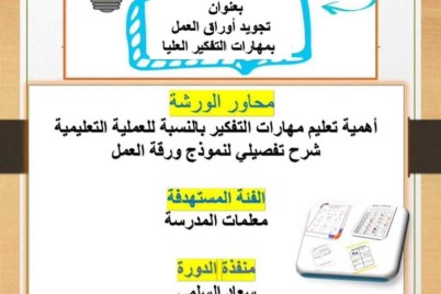الابتدائية الثالثة والسبعون تنظم ورشة تدريبية بعنوان "مهارات التفكير العليا"