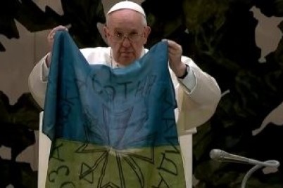 أدان البابا فرنسيس بابا الفاتيكان، ورأس الكنيسة الكاثوليكية، "مذبحة بوتشا" وقام بحمل العلم الأوكراني الذي أرسل له من المدينة...