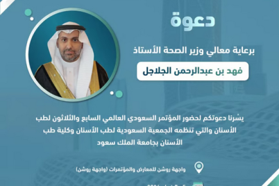 تحت رعاية معالي وزير الصحة الأستاذ فهد بن عبدالرحمن الجلاجل، تنظم الجمعية السعودية لطب الأسنان بالتعاون مع كلية طب الأسنان...
