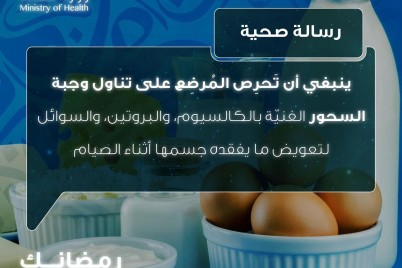 أكدت الصحة أهمية تناول وجبة السحور للأم الُمرضع في شهر رمضان، حيث نشرت عبر حسابها في تويتر ومنصتها التوعوية...
