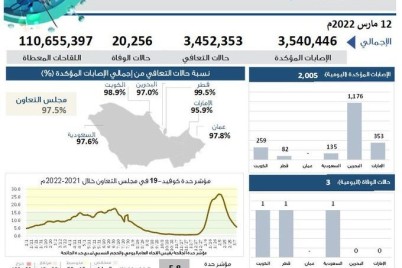 قارب عدد لقاحات كورونا المعطاة بدول مجلس التعاون من الـ111 مليون جرعة، فيما بلغت نسبة التعافي من الفيروس بالسعودية...