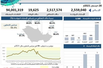 تجاوز عدد لقاحات كورونا المعطاة بدول مجلس التعاون الـ 94 مليون جرعة، فيما بلغت نسبة التعافي من الفيروس بالسعودية...