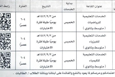 مكة المكرمة - أحمد آل عثمان أدى 175 ألف طالبٍ وطالبة في تمام الساعة 12:30 إلى 2.30 ظهراً اختبارات نهاية...