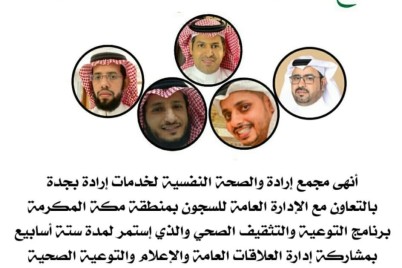 حمدان بن سلمان الغامدي - جدة اختتم مجمع إرادة والصحة النفسية لخدمات إرادة بجدة بالتعاون مع الإدارة العامة للسجون بمنطقة...