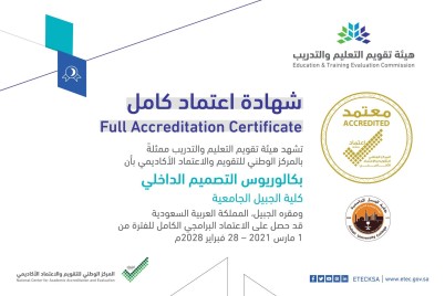 حصلت كلية الجبيل الجامعية التابعة لقطاع التعليم بالهيئة الملكية بالجبيل على الاعتماد البرامجي الكامل من المركز الوطني للتقويم والاعتماد الأكاديمي...