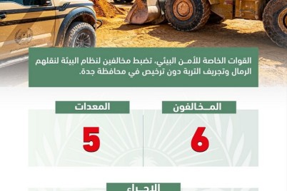 ضبطت القوات الخاصة للأمن البيئي 6 مخالفين لنظام البيئة لنقلهم الرمال وتجريف التربة دون ترخيص في محافظة جدة. وأوضح...