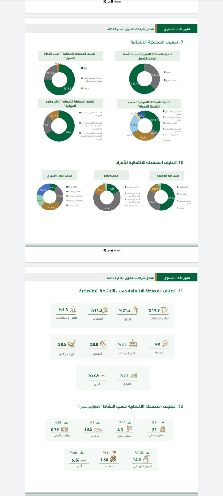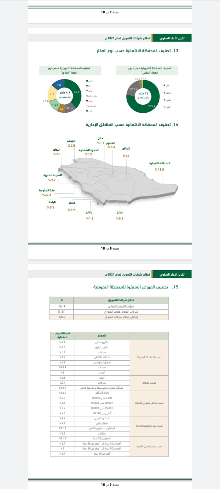 ويسلط التقرير الضوء على أبرز عناصر قائمة المركز المالي والدخل لقطاع شركات التمويل خلال عام 2021م، والمحفظة التمويلية للقطاع، والربحية ومؤشرات العائد، والرافعة المالية. كذلك يتضمن تصنيف المحفظة التمويلية للأفراد والمنشآت الصغيرة والمتوسطة ومتناهية الصغر، والقروض المتعثرة وتصنيفاتها، وحجم التمويلات الجديدة خلال الفترة، إلى جانب نسب السعودة في المستويات الإدارية، وعدد موظفي شركات التمويل. ويُمكن الاطلاع على تقرير قطاع التمويل لعام 2021م على موقع البنك المركزي.