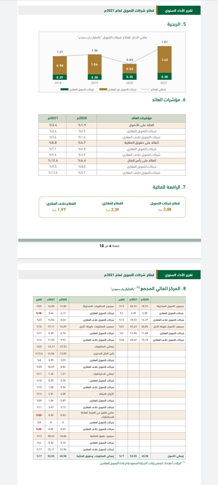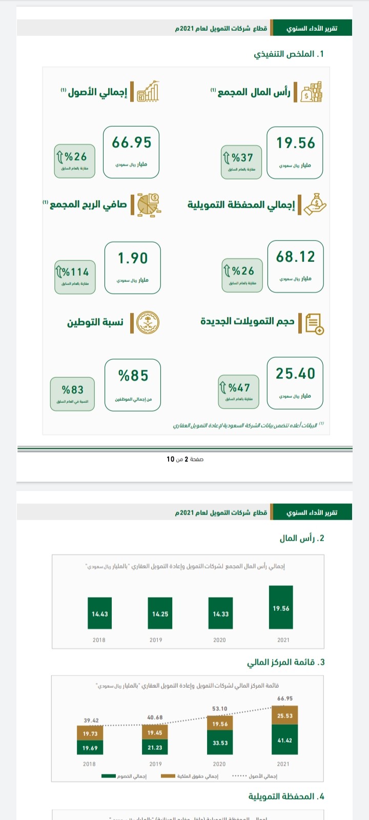 وكشف التقرير أن حجم التمويلات الجديدة بلغ  25.4 مليار ريال فيما بلغت إجمالي الأصول 66.9 مليار ريال وبلغ رأس المال المجمع 19.5 مليار ريال.
