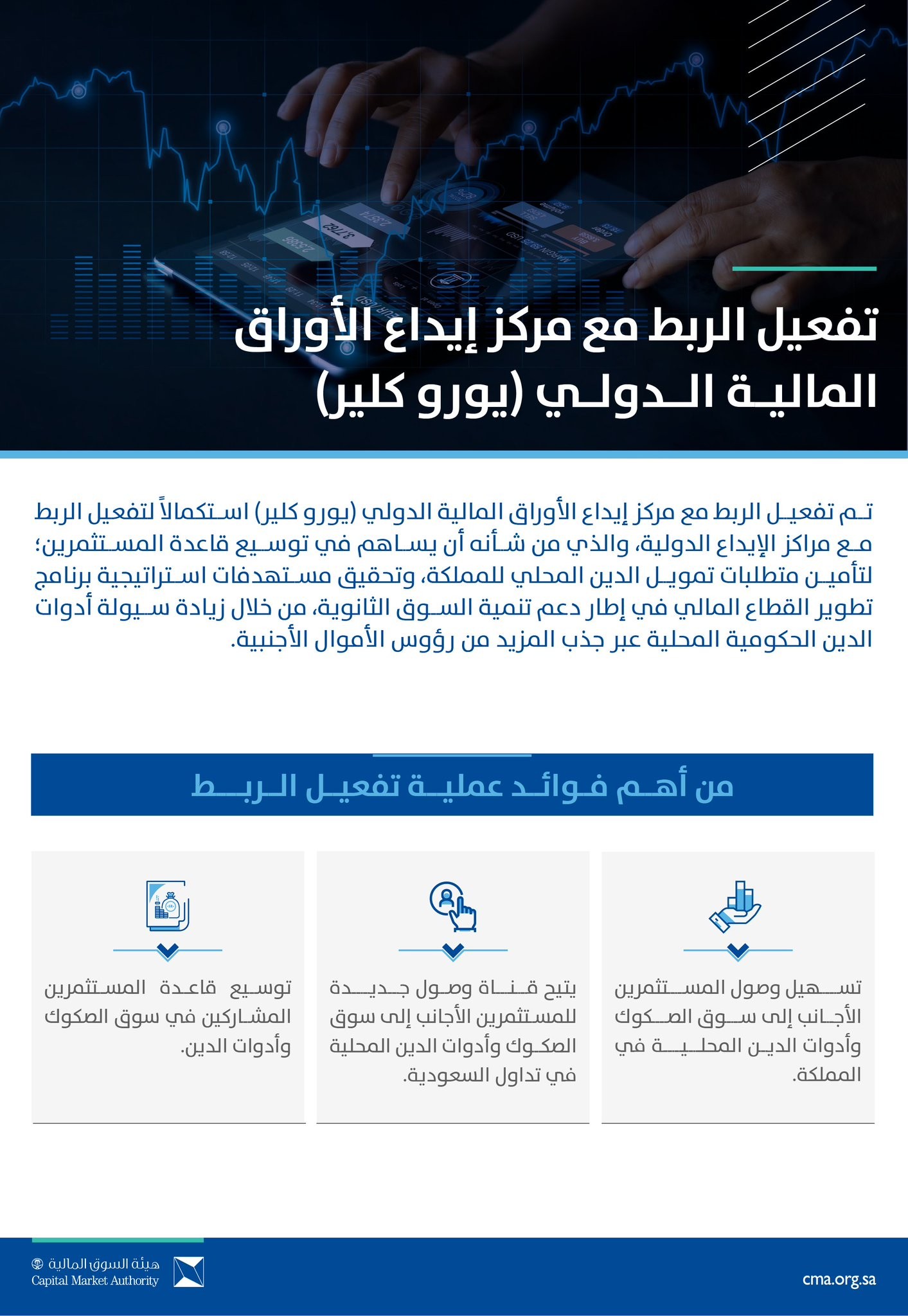السوق المالية: تفعيل الربط مع “يورو كلير” يسهم في تعزيز الوصول للأسواق المالية