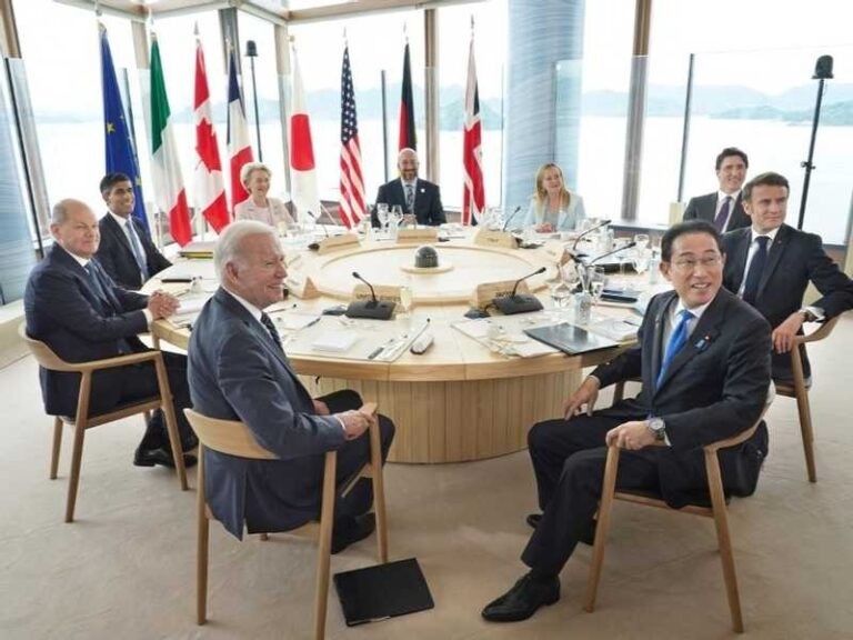 وأضافت المجموعة، في بيان صادر عن القمة، التي انطلقت في مدينة هيروشيما اليابانية اليوم الجمعة: "نتخذ اليوم خطوات جديدة لضمان فشل العدوان الروسي غير الشرعي على دولة أوكرانيا ذات السيادة ودعم الشعب الأوكراني في سعيه لتحقيق سلام عادل قائم على احترام القانون الدولي".