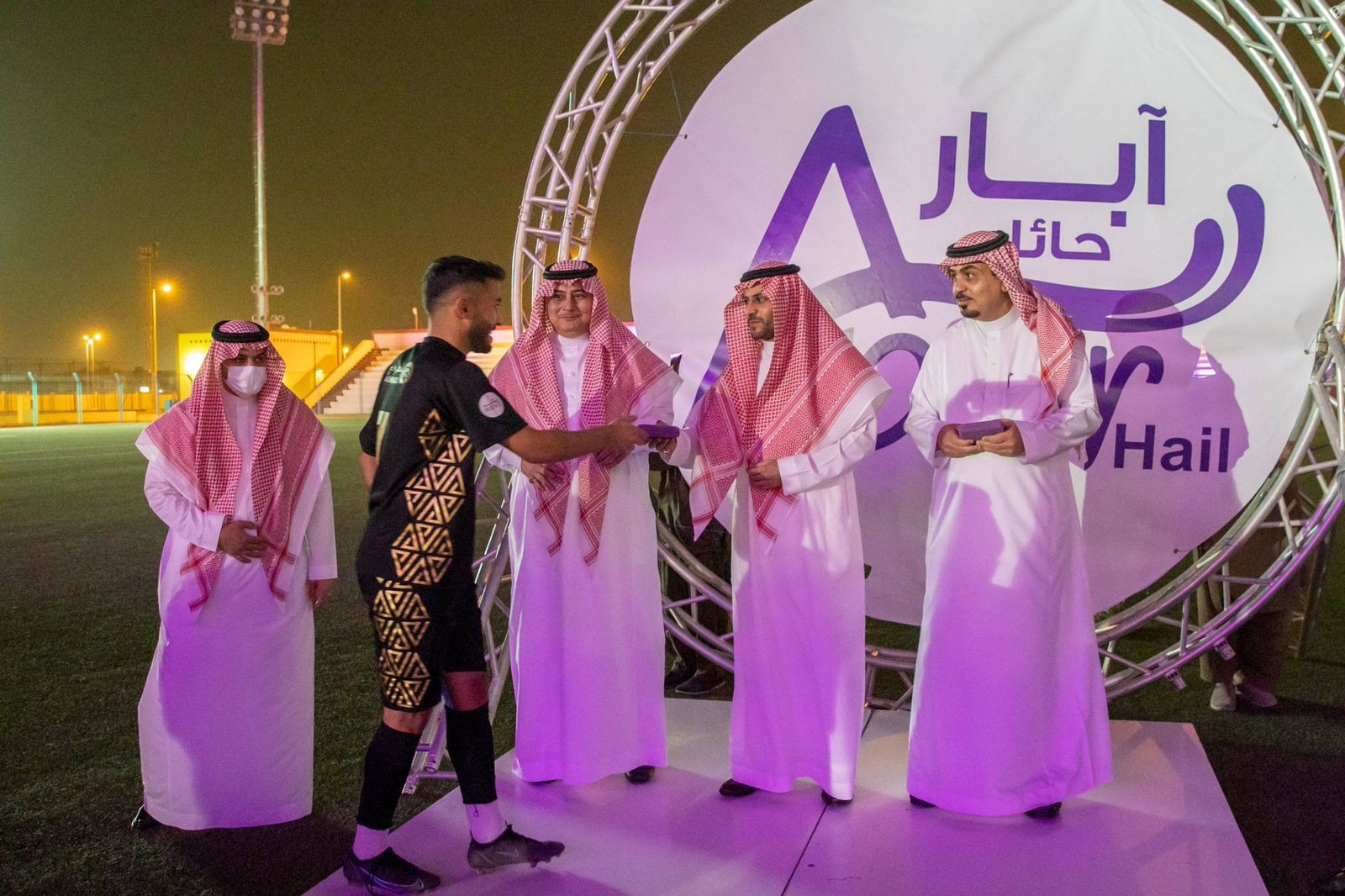 وكان في استقبال سموه مدير فرع وزارة الرياضة بالمنطقة أحمد روزي والرئيس التنفيذي لشركة مياه آبار حائل الشركة المنظمة للبطولة عواد الرضيمان وعدد من المسؤولين في المنطقة، حيث انتهت المباراة بفوز فريق سهلة على فريق الرمادي بنتيجة 4/ 0.
