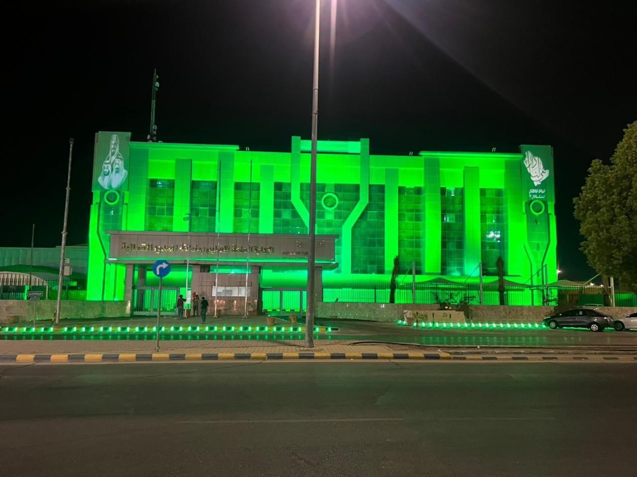 حيث زينت المباني التابعة للقطاعات الحكومية باللون الأخضر من خلال الاضاءة الليلة التي تظهر جمال المباني أثناء الليل وهي تكتسي باللون الأخضر في منظر بديع يبعث الشعور بالفرحة الكبيرة والاحتفاء بهذه المناسبة الغالية على قلوب الجميع