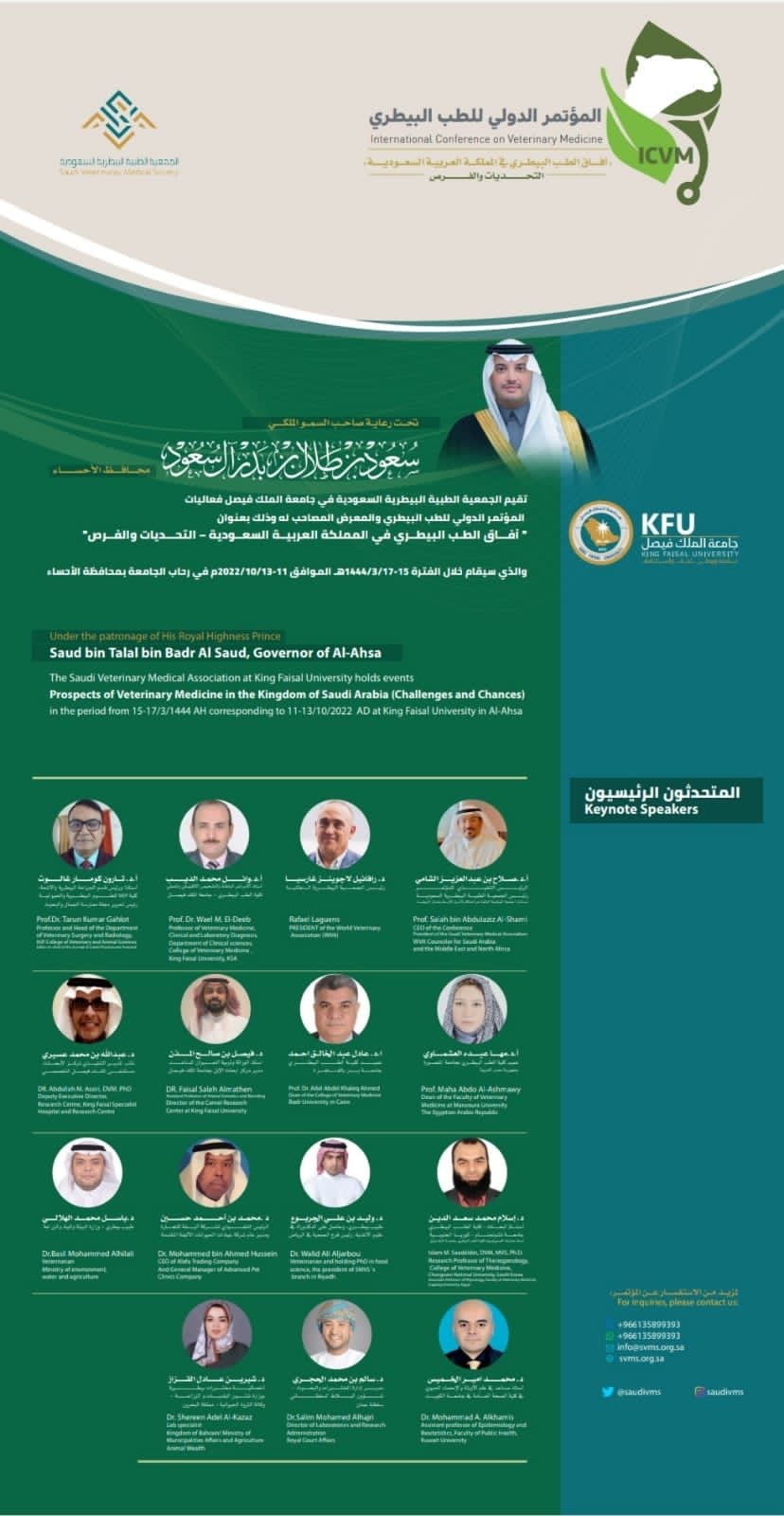 محافظ الأحساء يرعى المؤتمر الدولي الأول للجمعية البيطرية السعودية بعنوان: آفاق الطب البيطري بالسعودية - التحديات والفرص