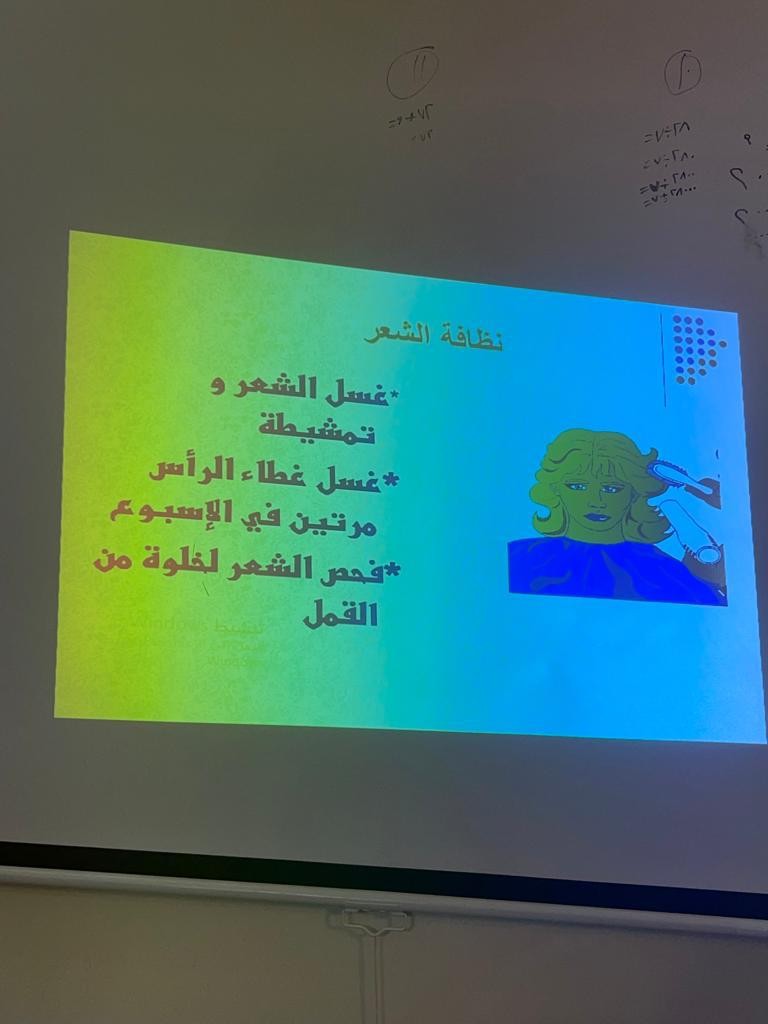 مركز التنمية بالقريات يقيم محاضره بعنوان(النظافة الشخصية)لطالبات الابتدائية.