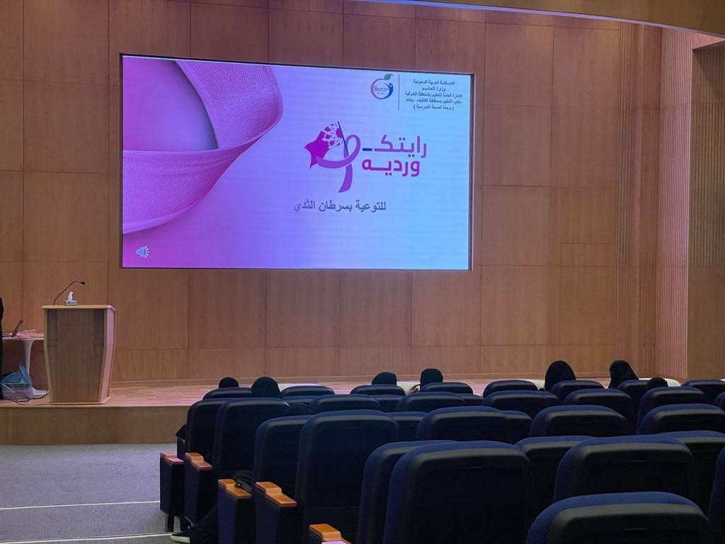 نظمت إدارة الصحة المدرسية بتعليم المنطقة الشرقية و بالشراكة مع وزارة الصحة برنامجا ً توعويا ً عن (مخاطر سرطان الثدي ) والذي انطلق تحت شعار ( رايتك وردية ) وذلك بالتزامن مع الشهر العالمي لسرطان الثدي في مقر مسرح الإدارة العامة للتعليم .