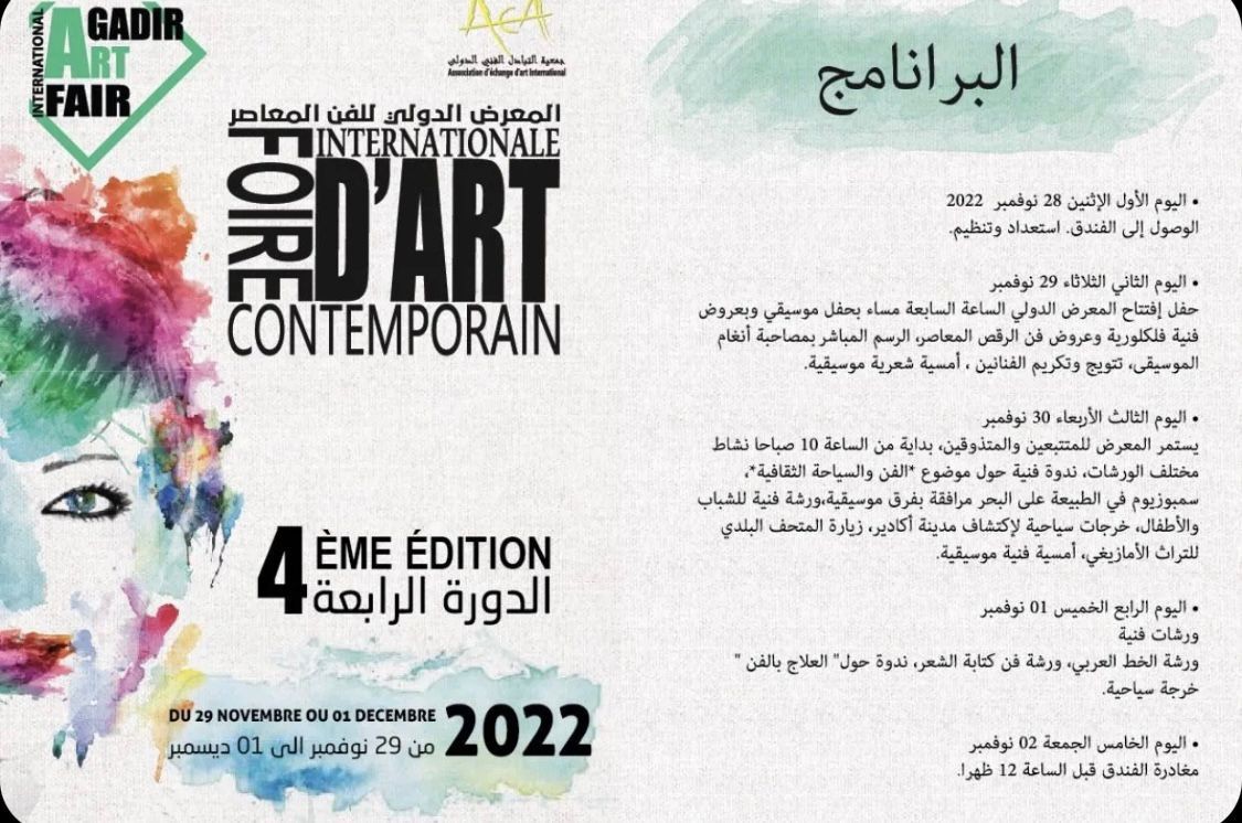 أعلن نائب رئيس مسلة آرت الدكتور : أحمد بن يوسف الحربي ، عن بدء التسجيل للفنانين والفنانات للمشاركة في معرض الفن المعاصر في دورته الرابعة والذي سيقام في مملكة المغرب في نهاية نوفمبر 2022 م ، و الذي سيكون تحت شعار ( الفن إنعكاس لثقافة الشعوب ) وذلك بحضور العديد من الشخصيات الفنية العالمية.