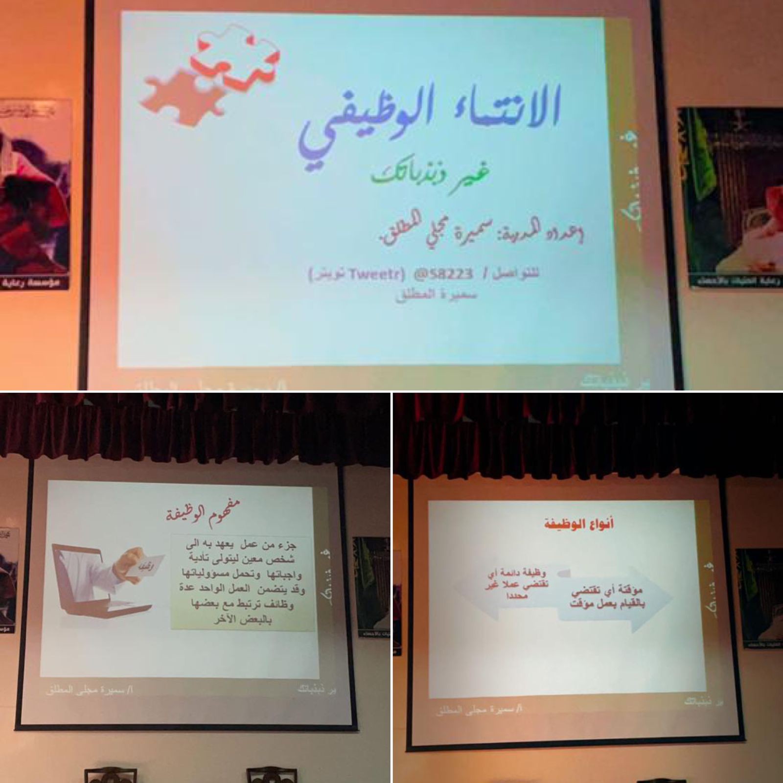 نفذت مؤسسة رعاية الفتيات بالأحساء بالتعاون مع جمعية التنمية الأسرية برنامجًا بعنوان ( الانتماء الوظيفي) من تنسيق الموظفة / لطيفة السلطان قسم الاتصالات الإدارية وتحت إشراف مديرة المؤسسة أ/فايزة بنت أحمد السدراني وقدمت البرنامج أ /سميرة المطلق من جمعية التنمية الأسرية حيث تناولت في برنامجها عدة محاور ومن أهمها شرح مفهوم الوظيفة وأنواعها