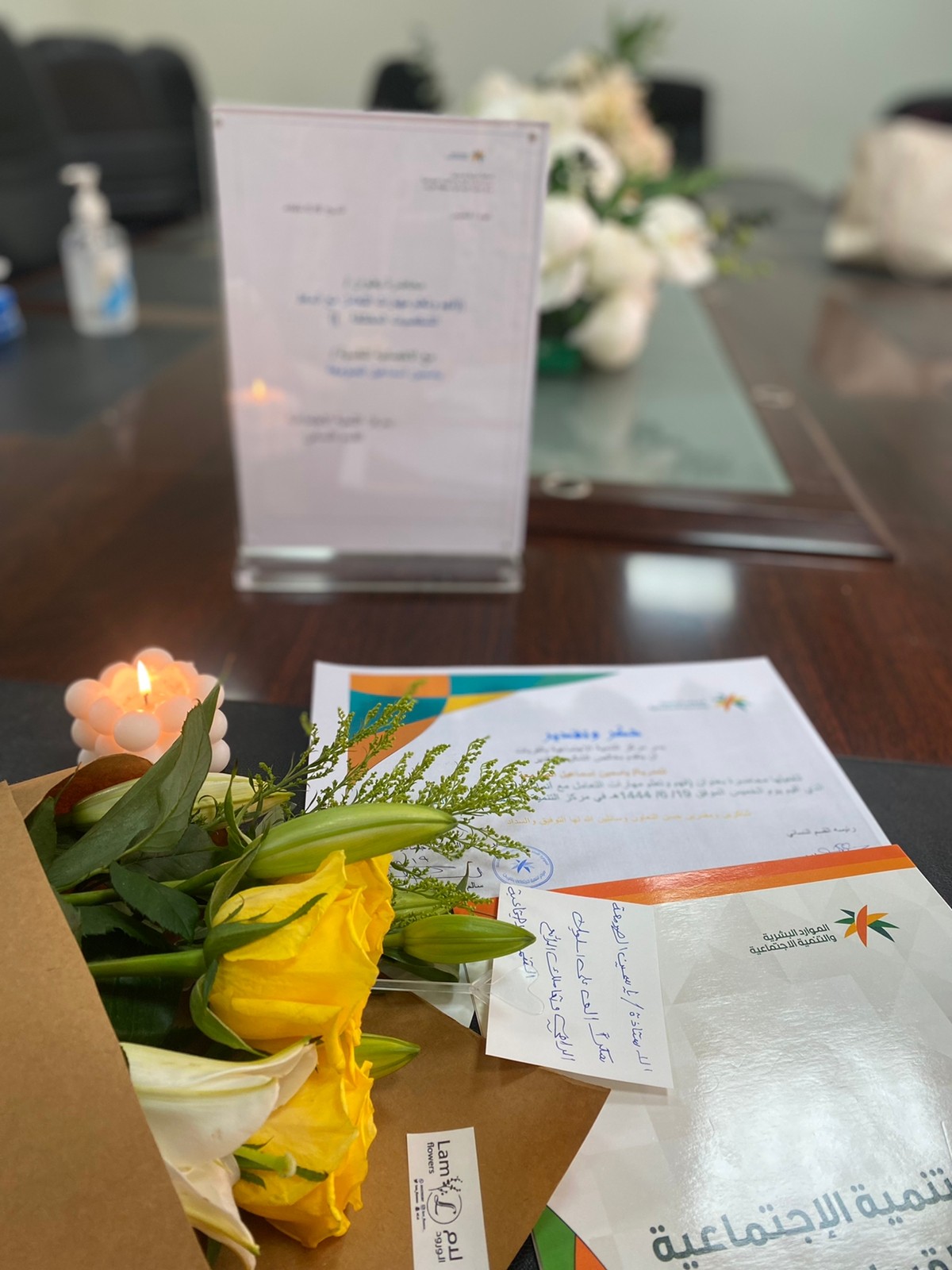من جانبه قدم مدير مركز التنميه الاجتماعيه بالقريات الاستاذ / سالم بن محمد الشراري شكره وتقديره للاخصائيه على جهودها وتعاونها وكذلك للقسم النسائي بقيادة الاستاذه / فصل الخميس .
