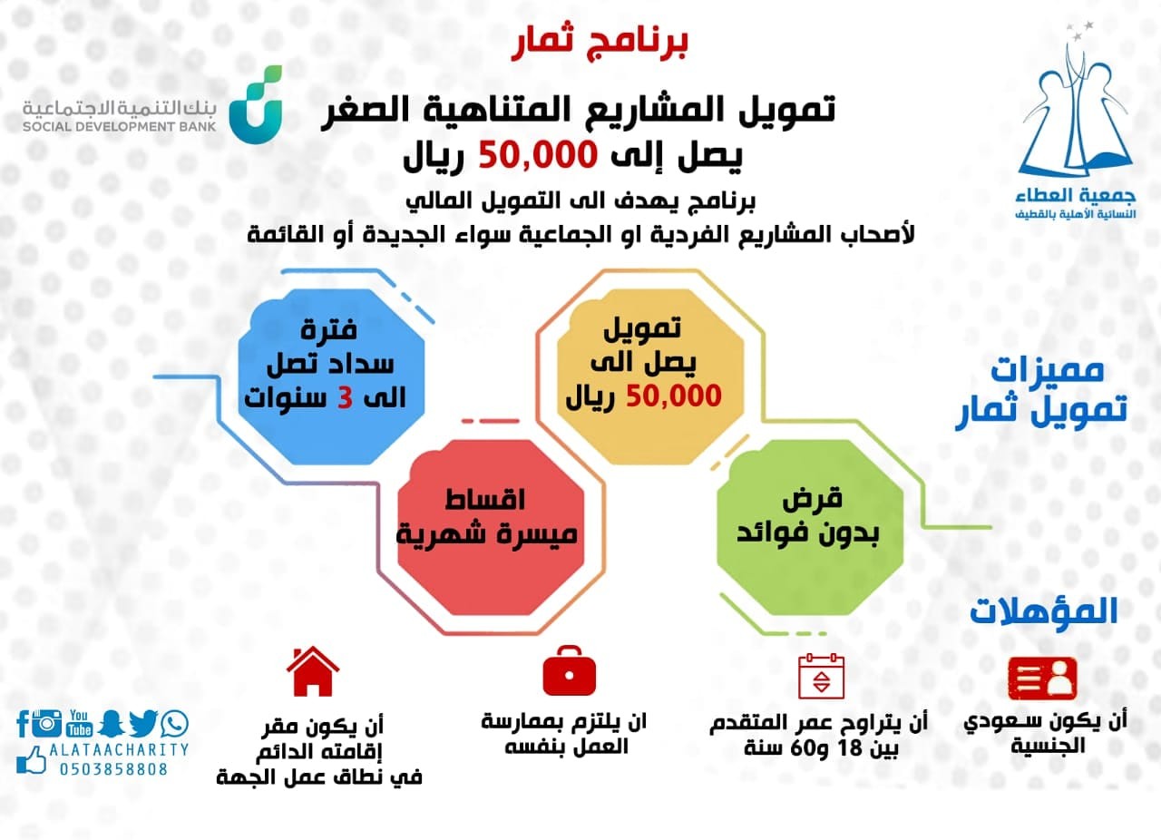 وعن مميزات التمويل قالت: يصل التمويل إلى (50 ألف ريال)، وهو عبارة عن قرض يتم تسديده بأقساط شهرية ميسرة وبدون فوائد وقد تصل فترة سداده إلى 3 سنوات.