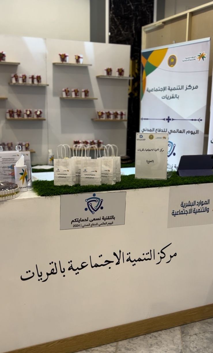 وقد تم تكريم مركز التنمية الاجتماعية من مدير إدارة الدفاع المدني العقيد محيلان العنزي لمشاركته الفعالة بالمعرض وتميزه كأحد الأركان المميزة بالمعرض .