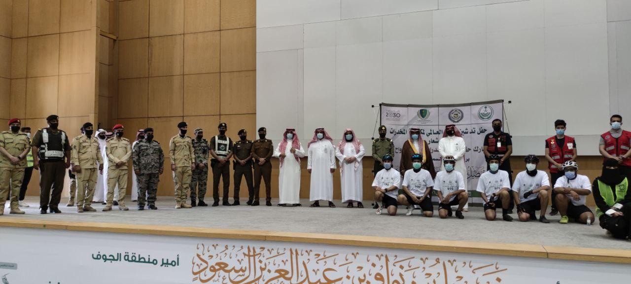 بتوجيه من صاحب السمو الملكي أمير منطقة الجوف الامير / فيصل بن نواف بن عبدالعزيز ال سعود - حفظه الله - تم تدشين فعاليات اليوم العالمي لمكافحة المخدرات بمنطقة الجوف من قبل سعادة وكيل امارة منطقة الجوف المساعد للشؤون التنمويه وسعادة العميد / حسين بن ملفي القحطاني مدير مكافحة المخدرات بمنطقة الجوف فعاليات اليوم العالمي لمكافحة المخدرات تحت شعار «شارك حقائق عن المخدرات "أنقذ الأرواح" » والذي صادف أمس السبت الموافق ٢٠٢١/٦/٢٦ م بمركز الملك عبدالله الثقافي بمدينة سكاكا وتخلل الفعاليات العديد من البرامج التوعوية بدأت بإطلاق مسيرة تجوب شوارع منطقة الجوف بمشاركة جميع الجهات الحكومية ودراجي المنطقة والخياله والسيارات الكلاسيكيه متجهة لمحافظة دومة الجندل حيث اقيم بها معرض توعوي وفعاليات مصاحبه له على المسرح كالقصائد الوطنية التوعوية والمحاضرات للتوعية بأضرار المخدرات وذلك لرفع مستوى الوعي لدى الجميع بأضرار المخدرات والمؤثرات العقلية