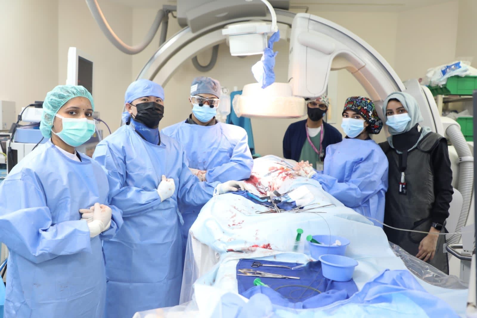 و أستُقبلت الحالة بعد التنسيق الطبي المسبق من مستشفى عام بجدة، وفور وصولها تم إجراء الفحص السريري و كل الفحوصات الطبية اللازمة منها المخبرية والإشعاعية، وعلى الفور تقرر إجراء عملية قسطرة جراحة أوعية دموية وفقًا للخطة الموضوعة، حيث خضعت لإجراء عملية وضع دعامة في الشريان الأورطي لتغطية مكان الإصابة من خلال فتحة في الفخذ تم فيها وضع الدعامة في وقت قياسي سريع تحت الأشعة التداخلية بنجاح، والتي استغرقت 90 دقيقة.