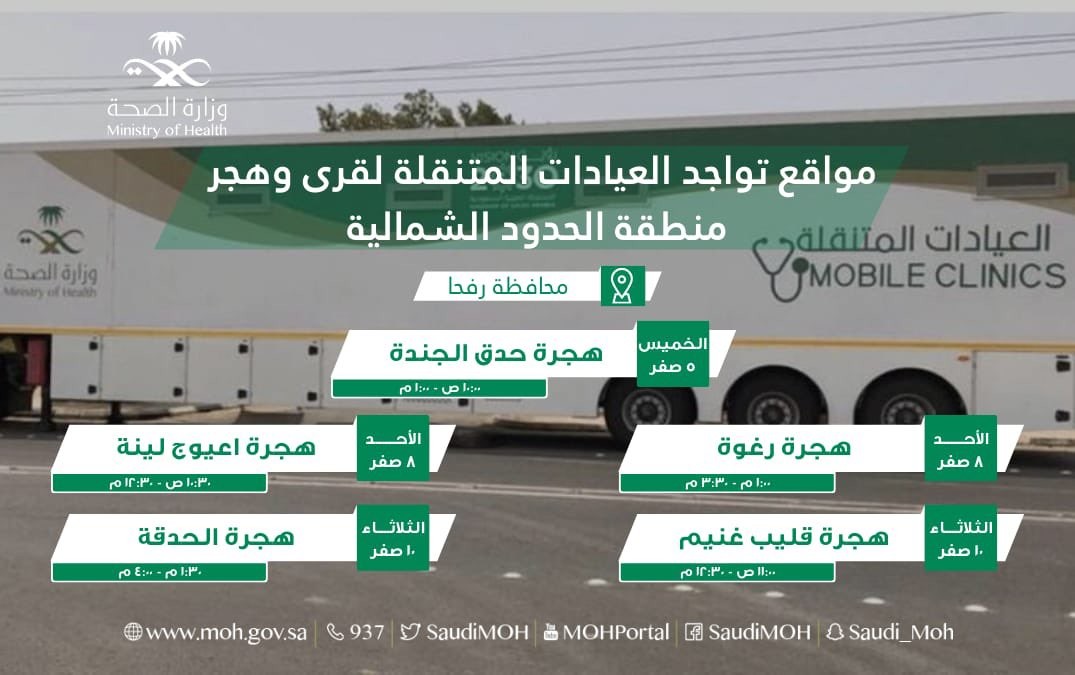 “صحة الشمالية” تحدد مواعيد وجود العيادات المتنقلة لهجر وقرى العويقيلة