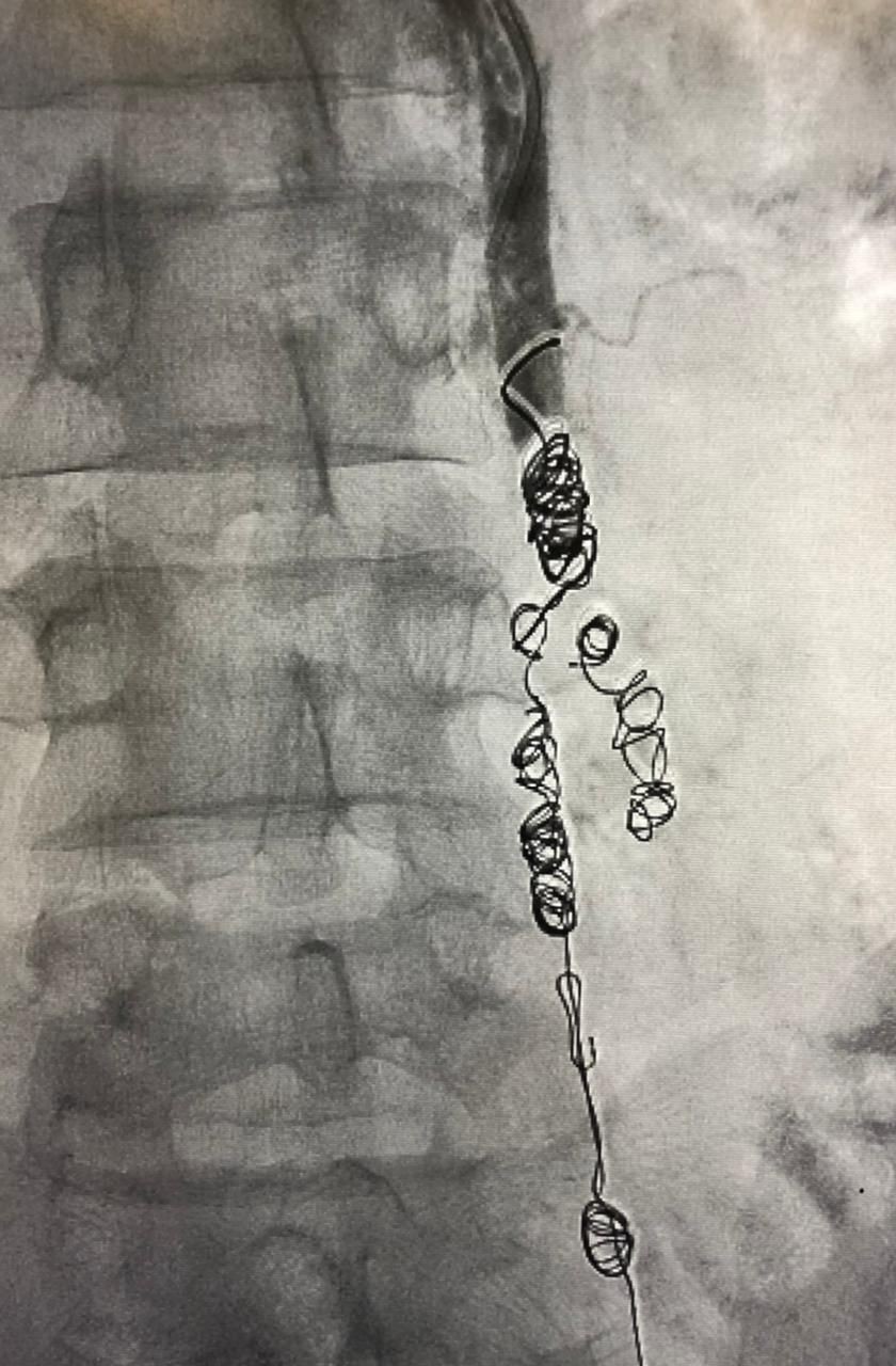 وأوضح رئيس الفريق استشاري الأشعة التداخلية الدكتور محمد شراحيلي أنه تم تحديد واستكشاف جميع الأوردة المسببة لارتجاع الدوالي وتم علاجها باستخدام اللفائف المعدنية الدقيقة وحقن المادة المتصلبة