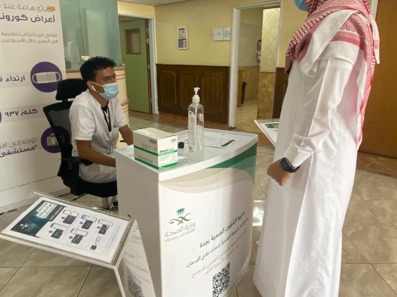 دشن مجمع إرادة والصحة النفسية لخدمات إرادة بجدة ممثلاً في إدارة العلاقات العامة والإعلام والتوعية مبادرة العيادات عن بعد العيادات الافتراضية عبر ركن التوعية بمدخل المجمع مع شرح موسع للمراجعين والمستفيدين ونشر وتوزيع المنتجات على الإستاندات البلاستيكية في مواقع مختلفة بالمجمع بهدف التسهيل والتعريف للمرضى بإتاحة الخدمة العلاجية وهم في منازلهم عبر هذه الخدمة الافتراضية .