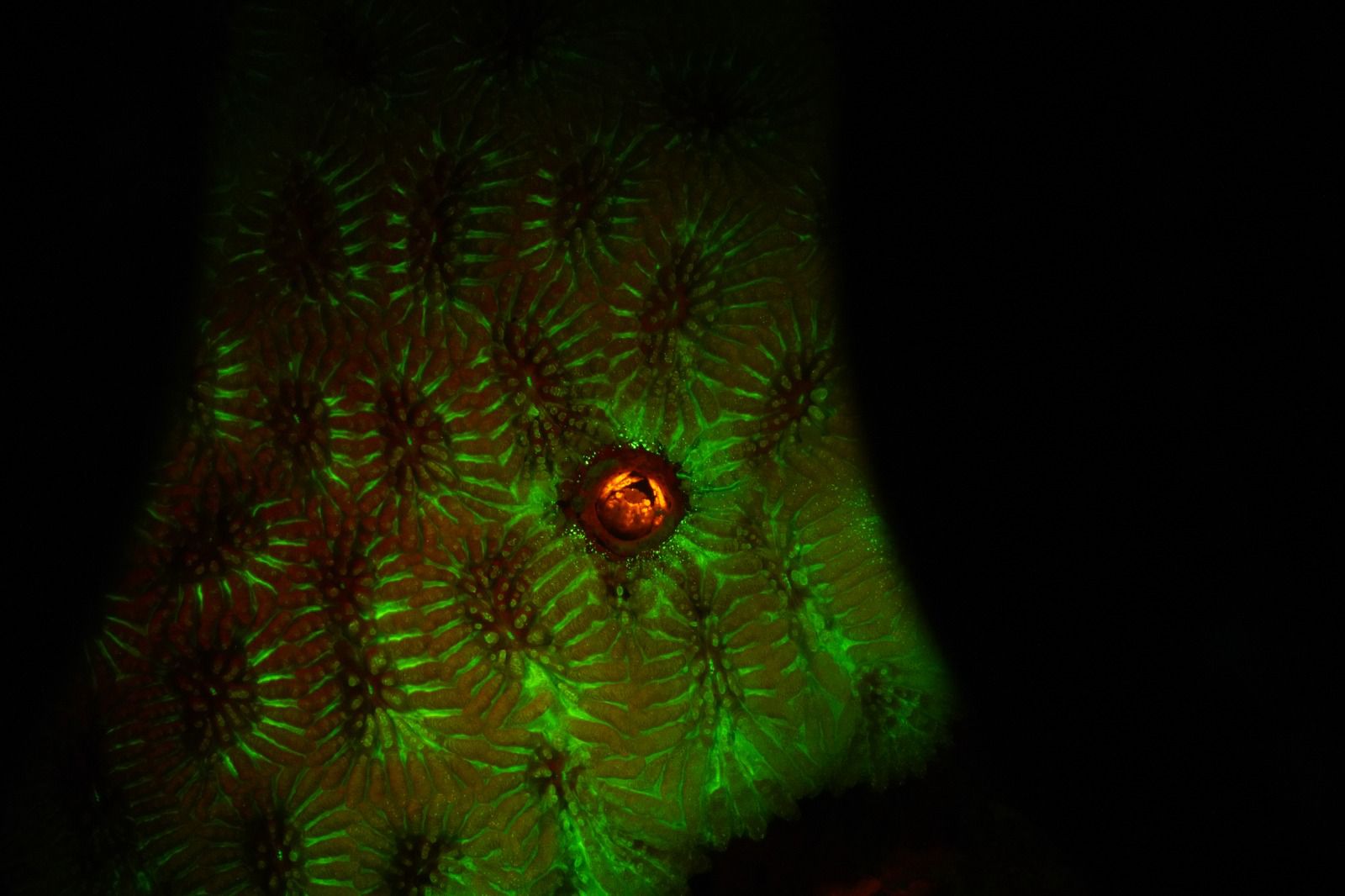 اكتشف باحثو جامعة الملك عبد الله للعلوم والتقنية (كاوست) أن سرطانات "جال" الصغيرة طورت خاصية التوهج الفلوري لمساعدتها على التمويه داخل المخابىء التي تنشئها في الشعاب المرجانية.