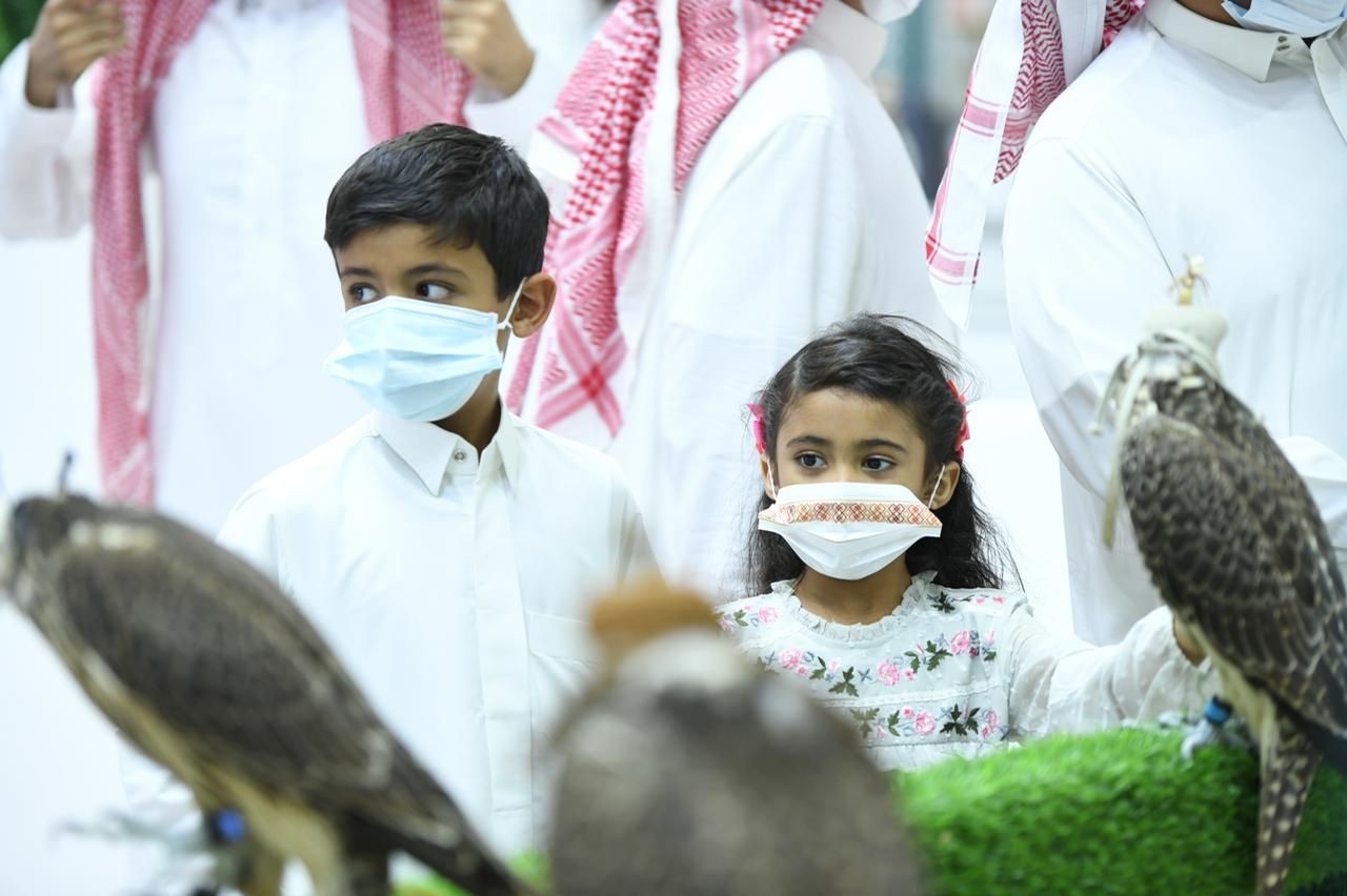 الأطفال يعيشون تراث الأجداد في المزاد الدولي لمزارع إنتاج الصقور