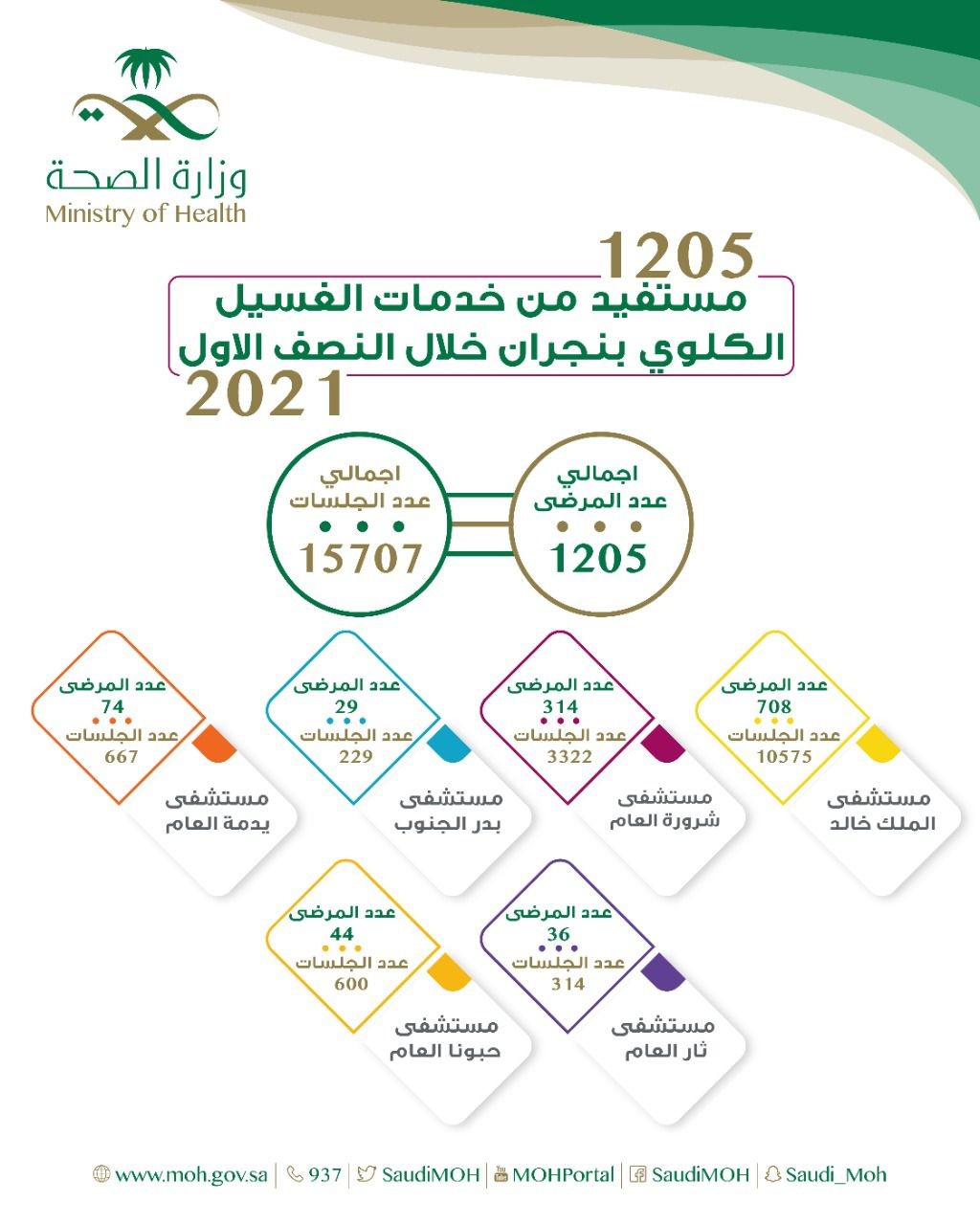 1205 مستفيدين من جلسات الغسيل الكلوي بمستشفيات صحة نجران