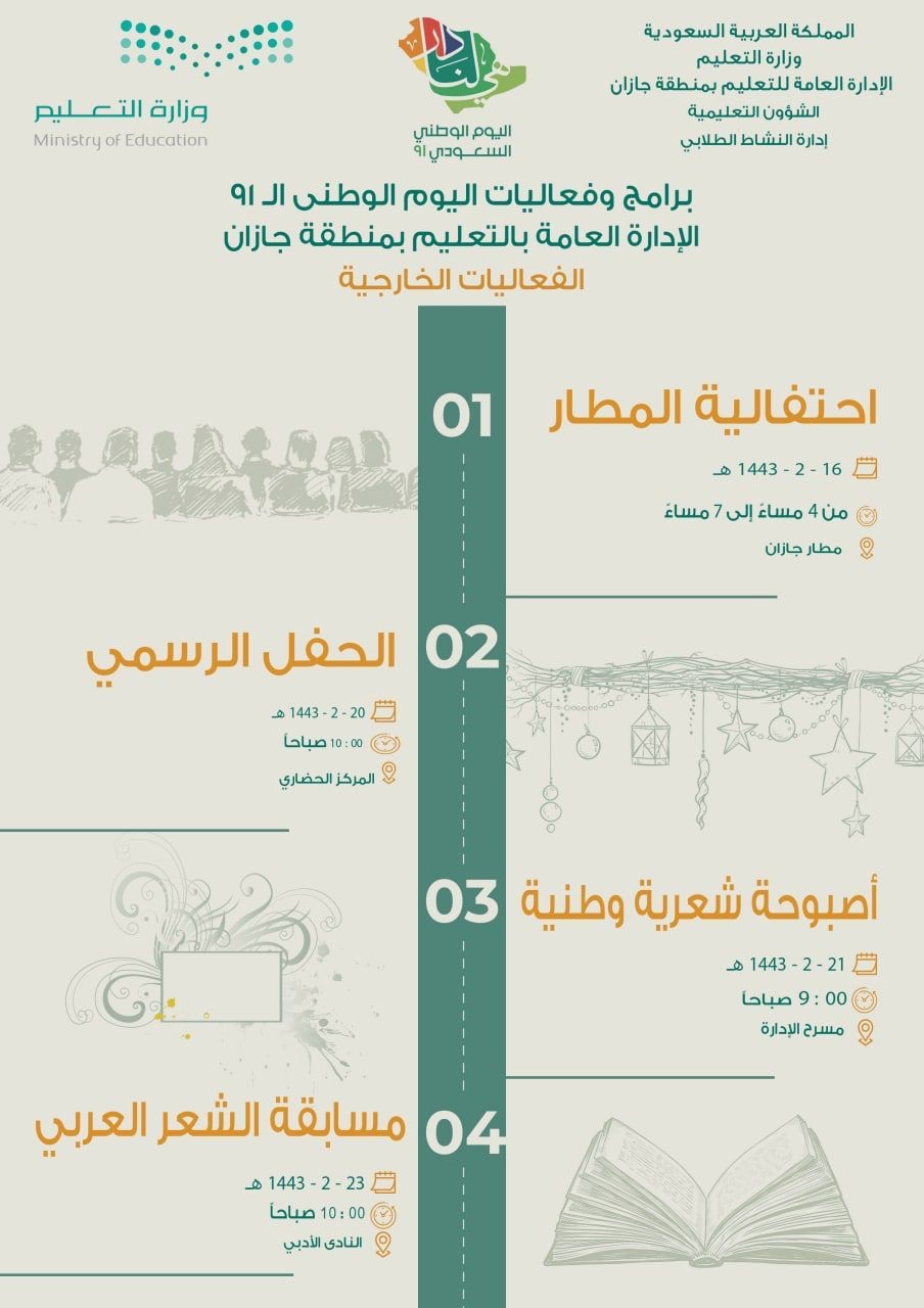 تنوع في الفعاليات للاحتفاء باليوم الوطني ال 91 بتعليم جازان