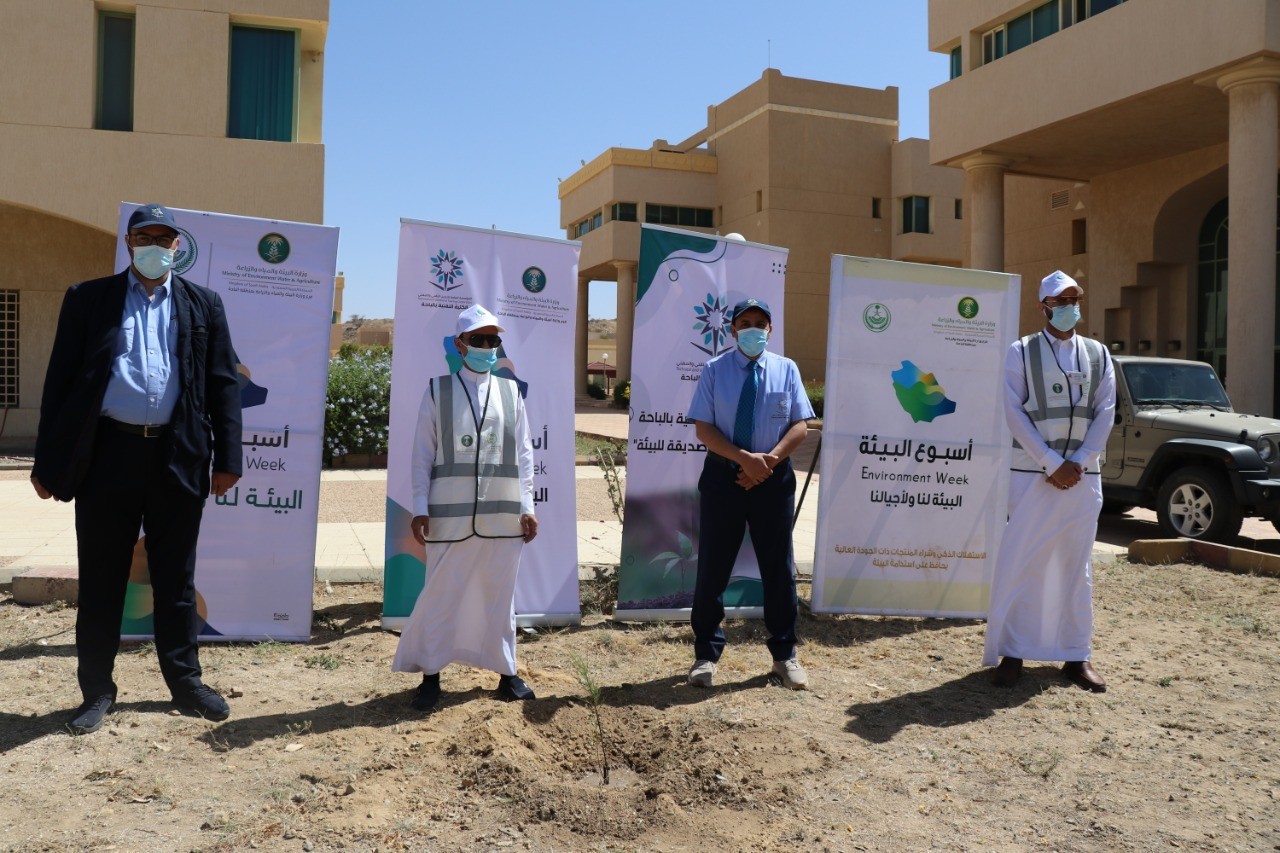 دشن عميد الكلية التقنية والمشرف على المعهد الصناعي الثانوي بالباحة الاستاذ عبدالله علي خليف، مبادرة بعنوان "كليتنا خضراء وصديقه للبيئة" وذلك تزامناً مع أسبوع البيئة تحت شعار "البيئة لنا ولأجيالنا" بمشاركة فرع وزارة البيئة والمياه والزراعة بالباحة.