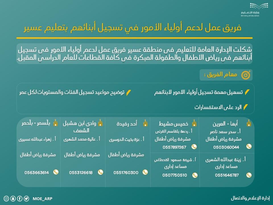 فرق عمل لدعم أولياء الأمور في تسجيل أبنائهم بتعليم عسير