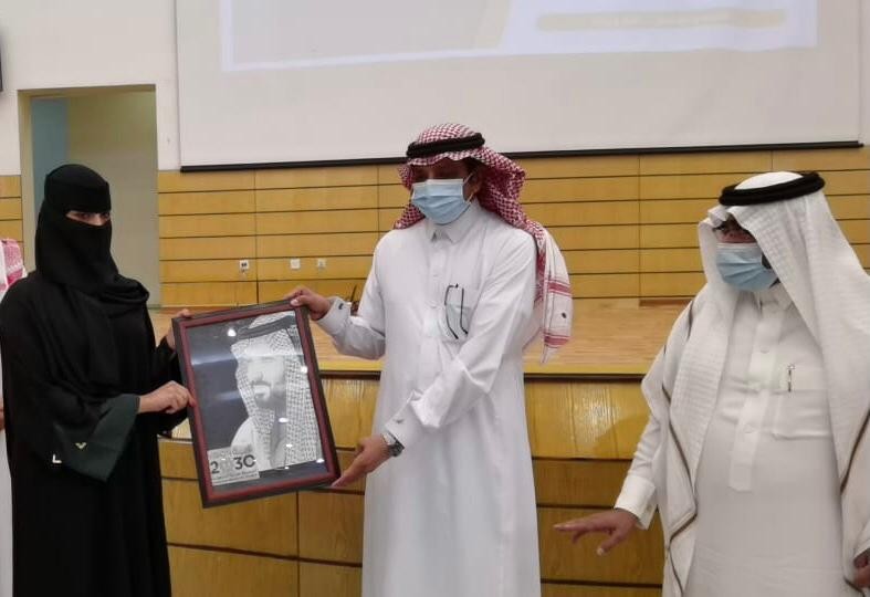 وفي الختام كرم سعادة الوكيل المتميزين بميداليات وشهادات تميز. وقدم لسعادته هدية الكلية. كما قدمت له الطالبة الرسامة إبتهال لوحة إحترافية تحمل صورة سمو ولي العهد محمد بن سلمان.