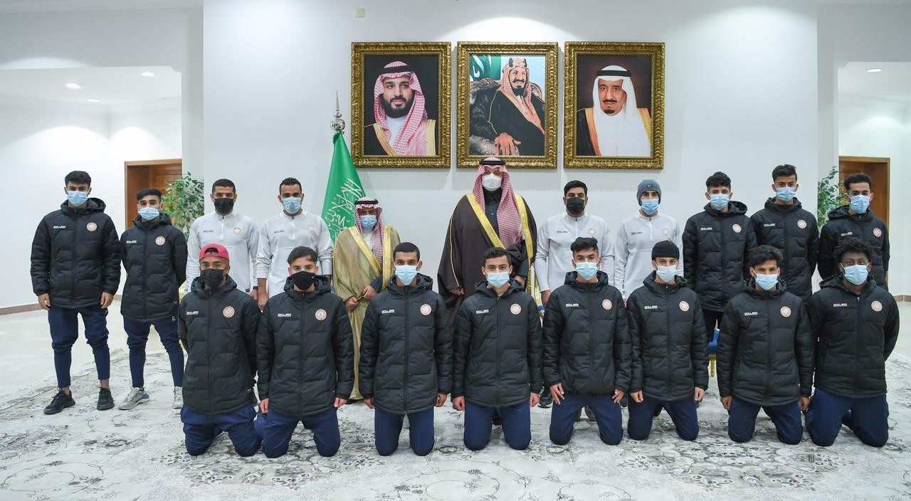 استقبل ⁧‫الأمير فيصل بن خالد بن سلطان‬⁩ ⁧‫أمير منطقة الحدود الشمالية‬⁩ في ديوان الإمارة  , رئيس مجلس إدارة نادي عرعر علي السويلم يرافقه اللاعبون والجهاز الإداري والفني بمناسبة صعود النادي لدرجة الشباب - تحت 19 سنة - للدوري الممتاز.