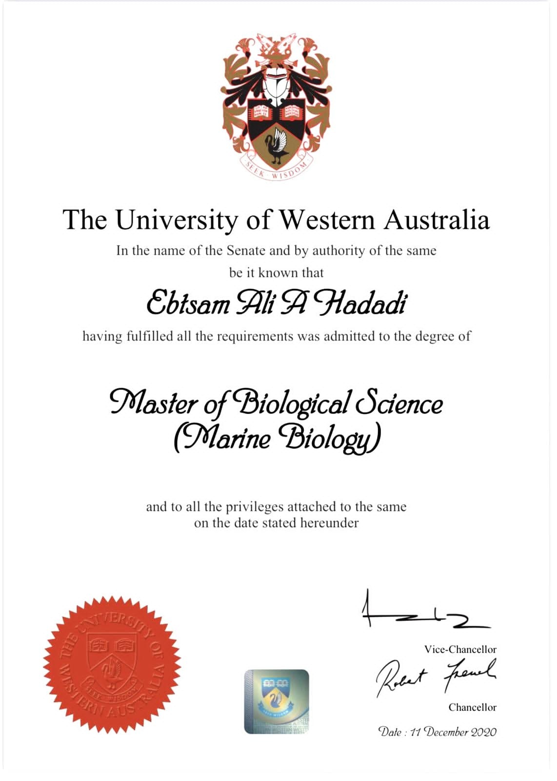 " حدادي " تحصل على درجة الماجستير من جامعة غرب أستراليا