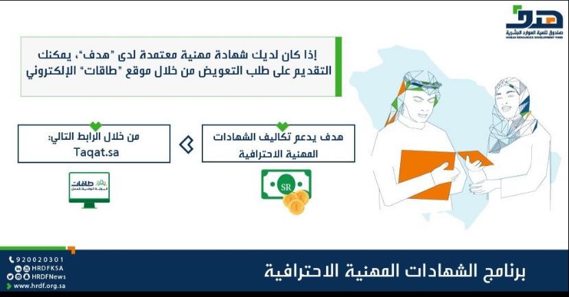 اعتمد صندوق تنمية الموارد البشرية (هدف)، 28 شهادة مهنية احترافية جديدة، لترتفع الشهادات المعتمدة في برنامج الشهادات المهنية الاحترافية إلى 106 شهادات في عدة مجالات نوعية وتخصصات مختلفة، تهدف إلى رفع كفاءة القوى الوطنية وزيادة تنافسيتها في سوق العمل.
