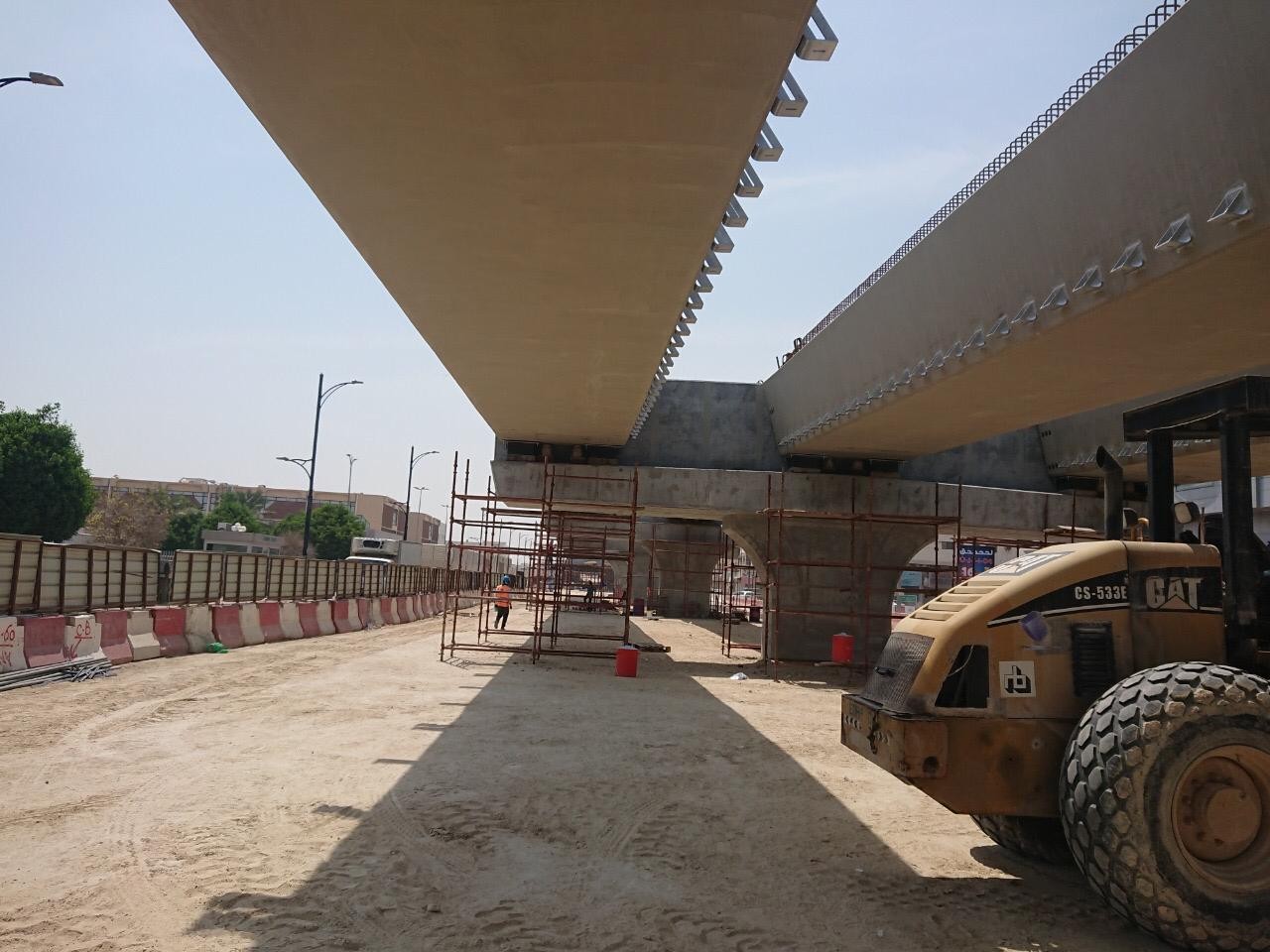 فيما يتم العمل حاليا على استكمال صبيات الخرسانة للركيزة الطرفية A2، واستكمال تنفيذ و تركيب الكمرات الخرسانية مسبقة الصنع، بالإضافة إلى بلاطات الجسر مع العزل المائي للبلاطات، واستكمال أعمال الطرق للجسرين وطرق الخدمة، وتركيب فواصل التمدد وكذلك إنهاء الدهانات الخاصة بالجسرين.