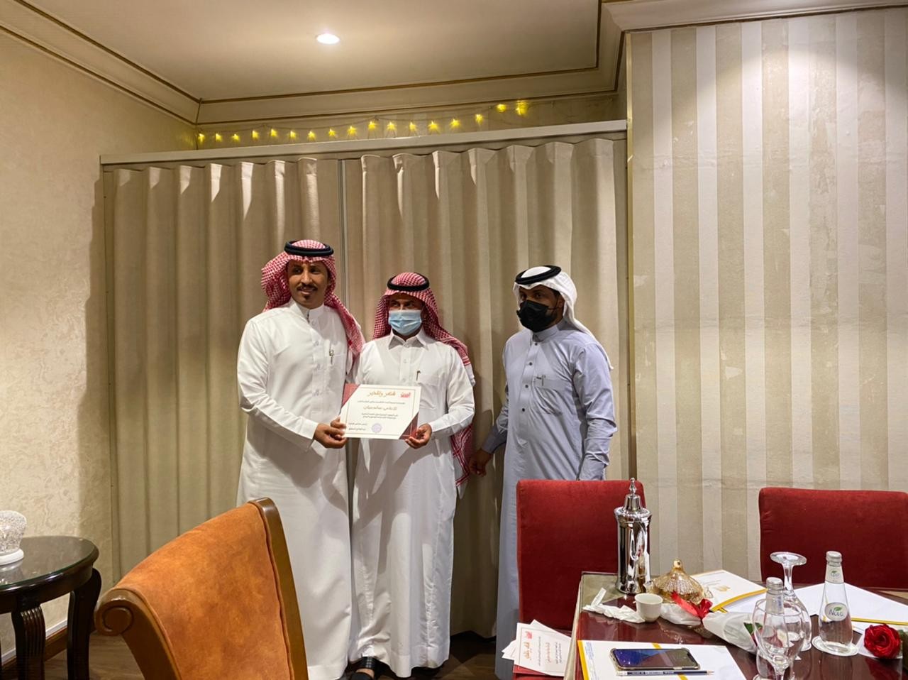قام المطلق وعقيبي في نهاية الاجتماع بتكريم جميع الزملاء والزميلات المتواجدين في الاجتماع وذلك عرفانًا وشكرًا لهم على تفاعلهم المستمر وتواجدهم رغم تباعد المسافات ومشقة الطريق.