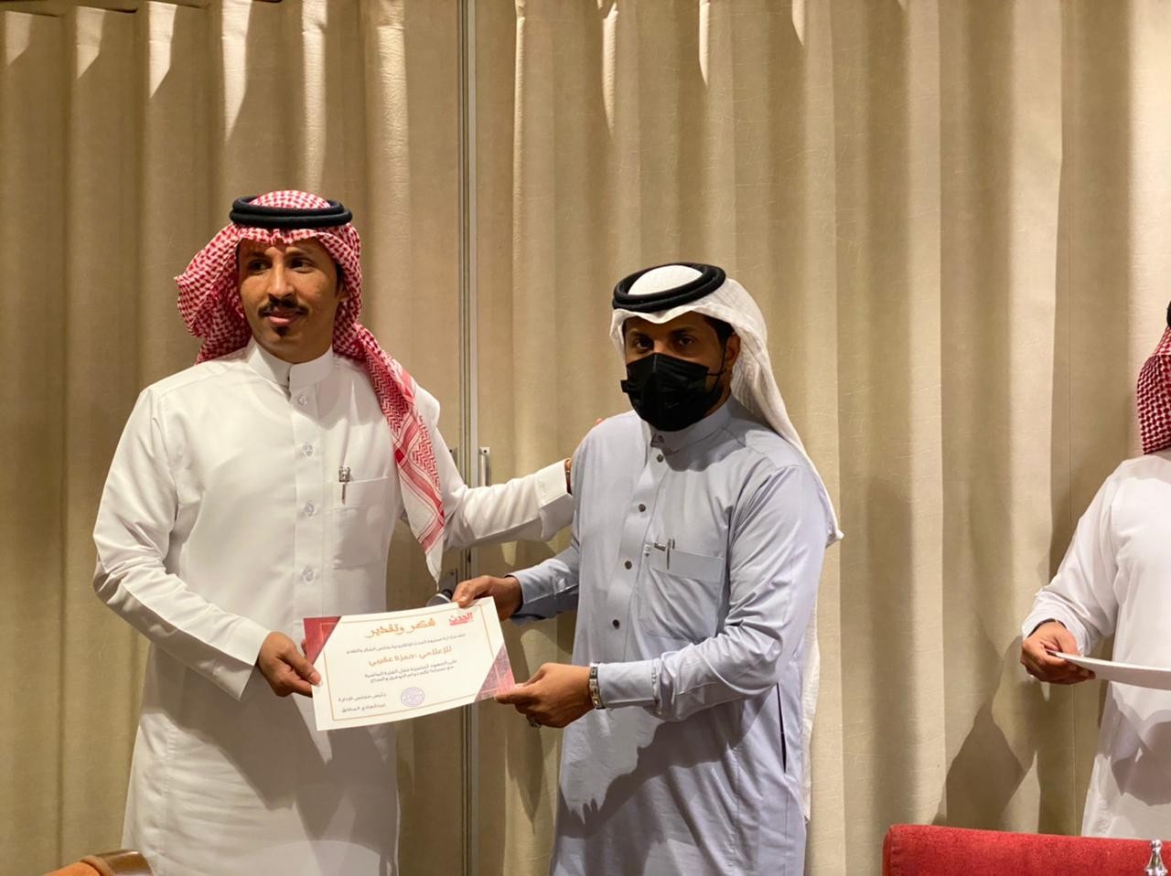 *والعياشي*... كانت لهم مشاركات تمحورت حول تفعيل دورات تدريبية للمحررين المبتدئين وبخصوص التغطيات الحصرية وساهم المجرشي كثيرًا في تنظيم الاجتماع وتطبيق الاحترازات في صالة الاجتماعات بالفندق.