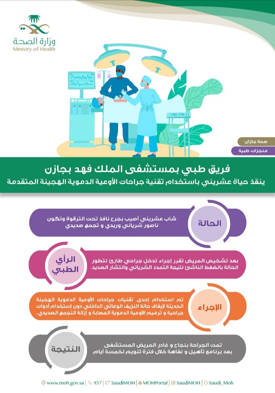 مستشفى الملك فهد بجازان ينقذ شابًا عبر تقنية جراحات الأوعية الدموية الهجينة المتقدمة